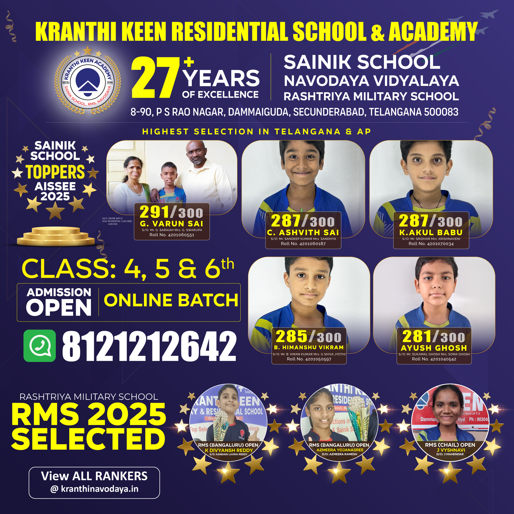 Since 1998, KRANTHI KEEN ACADEMY has been the trusted choice for parents seeking the best preparation for their children’s Sainik School, RMS, and Navodaya Vidyalaya Entrance Exams. Our innovative and dedicated faculty ensures your child receives the guidance and support they need to excel.